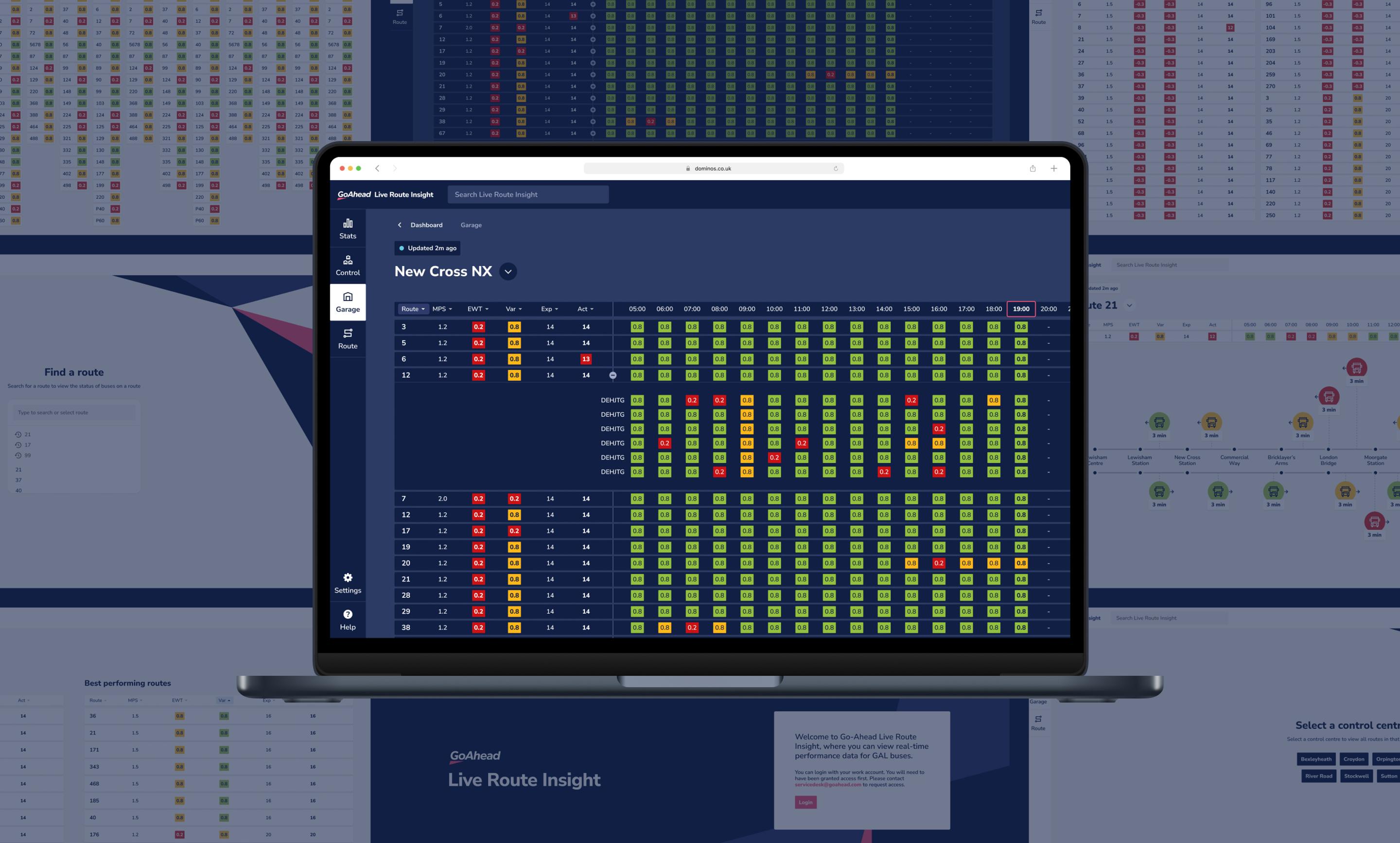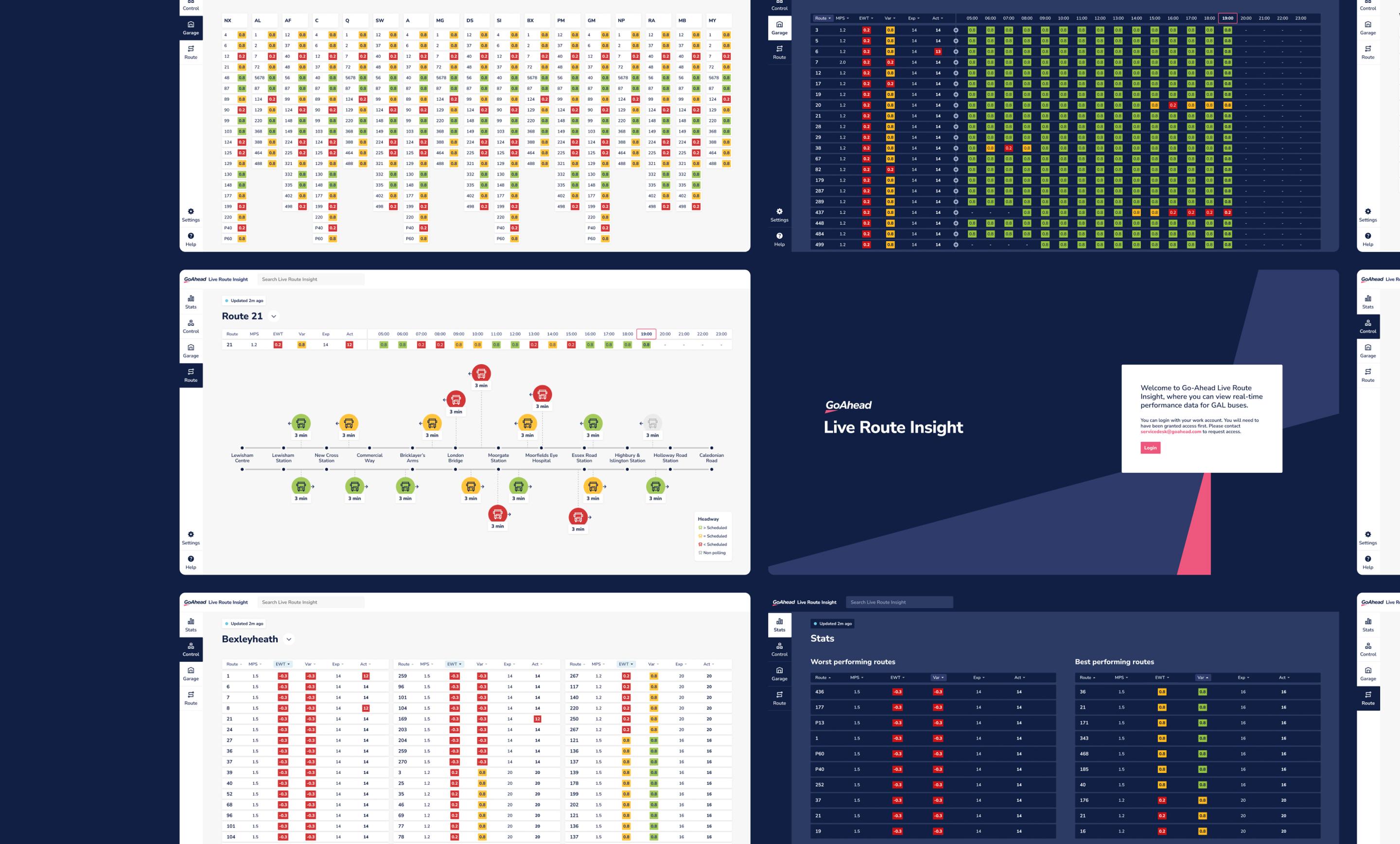 - "Glanceable" by Design: The interface was purpose-built for large screens in busy control centres, allowing operators to absorb complex route performance data at a glance without needing to click or scroll.